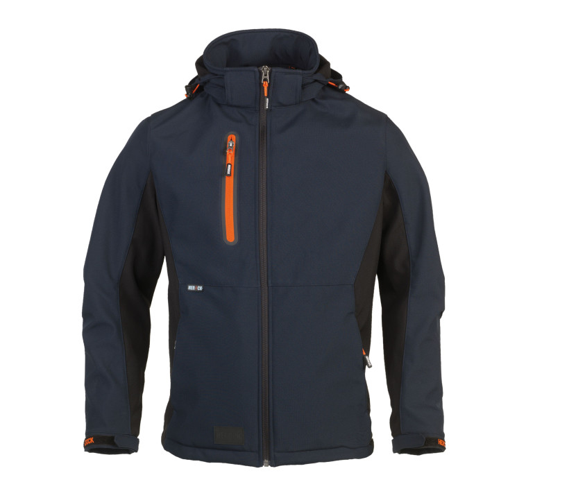 Veste Softshell respirante (3000 mvp), imperméable (5000 mm) et coupe-vent. Multi-poches. Capuche amovible. Poche poitrine. 2 poches latérales. Poignets ajustables. Taille ajustable par cordon élastiqué. Certifié EN ISO 13688:2013 et EN 14058:2017 13XX.
