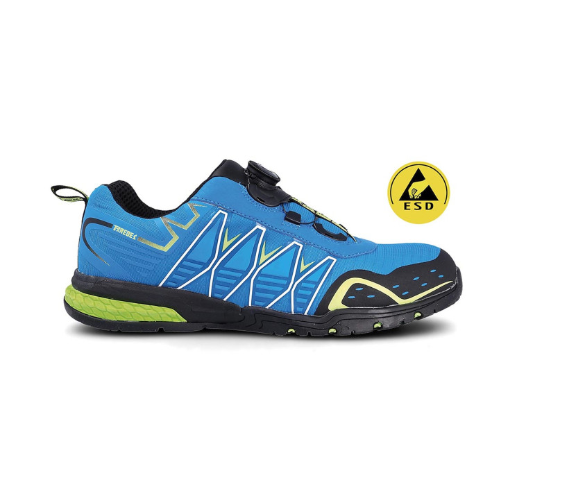 Chaussures basses de sécurité avec embout COMPACT® non métallique, résistant aux impacts >200 joules. Approuvé spécification UNE EN ISO 20345. Certification S3 ESD SRC. Semelle en caoutchouc double densité EVA-Nitrile "SRC", anti-dérapante, anti-perforation COMPACT® non métallique. Talon rembourré PU 4mm. Protège des charges électrostatiques supérieures à 100kΩ et inférieures ou égales à 1000MΩ.