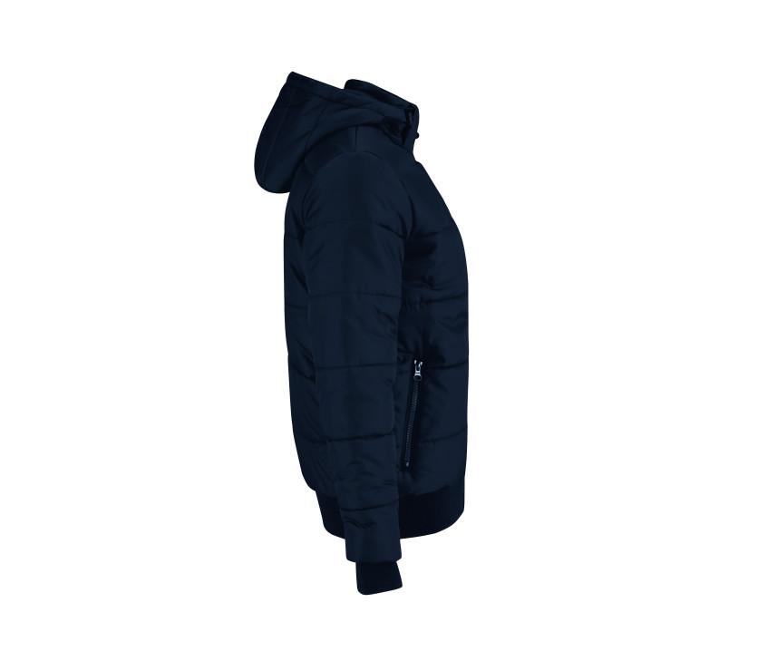 Coupe-vent déperlant et respirant. Col montant. Patte intérieure anti-intempéries. Bord côte aux manches. Accès marquage dos et cœur. 2 poches avant avec fermeture Éclair®. 1 poche portefeuille intérieure. Capuche rembourrée, détachable et ajustable.