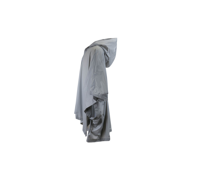 Cape de pluie en PVC. Imperméable et coupe-vent. Fermeture col par 2 boutons pression. Capuche avec cordon. Peut s’étendre à plat pour faire une bâche ou une protection sur le sol. Vendu avec une pochette avec poignée. 2 boutons pression de chaque côté.