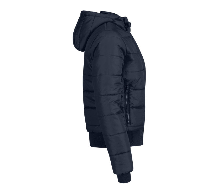 Tissu extérieur avec enduit acrylique, résistant aux averses, respirant et coupe-vent. Col montant. Patte intérieure anti-intempéries. Finition en côte sur les poignets et le bord inférieur. Accès marquage dos et cœur. 2 poches avant avec fermeture Éclair®. 1 poche portefeuille intérieure. Capuche rembourrée, détachable et ajustable.