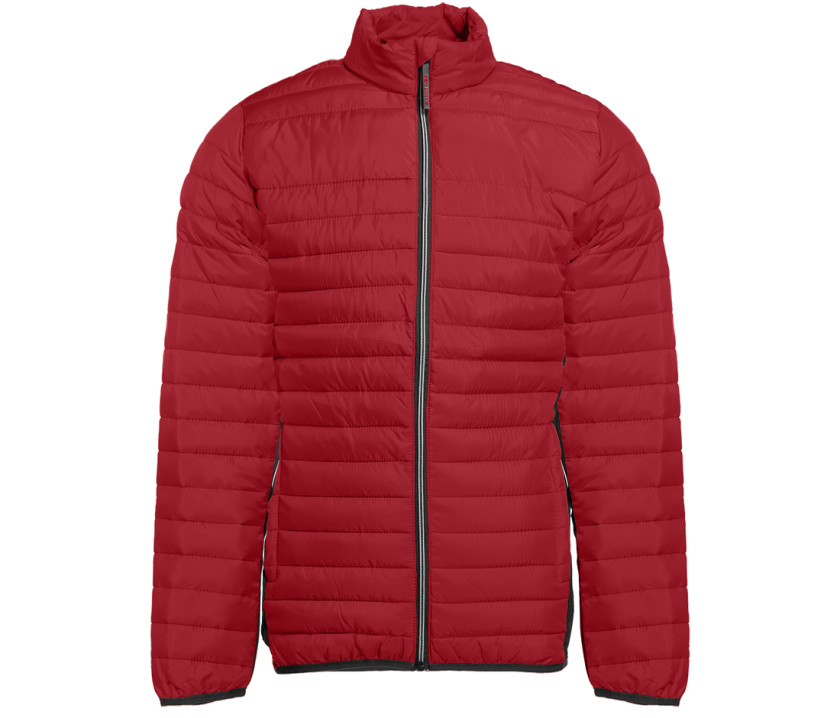 Doudoune légère moderne bi-matière, coupe ajustée. 2 poches latérales zippées. 2 poches intérieures. Protège menton. Zips contrastés. Dimension zone de marquage avant 9cm et 12cm à l’arrière.