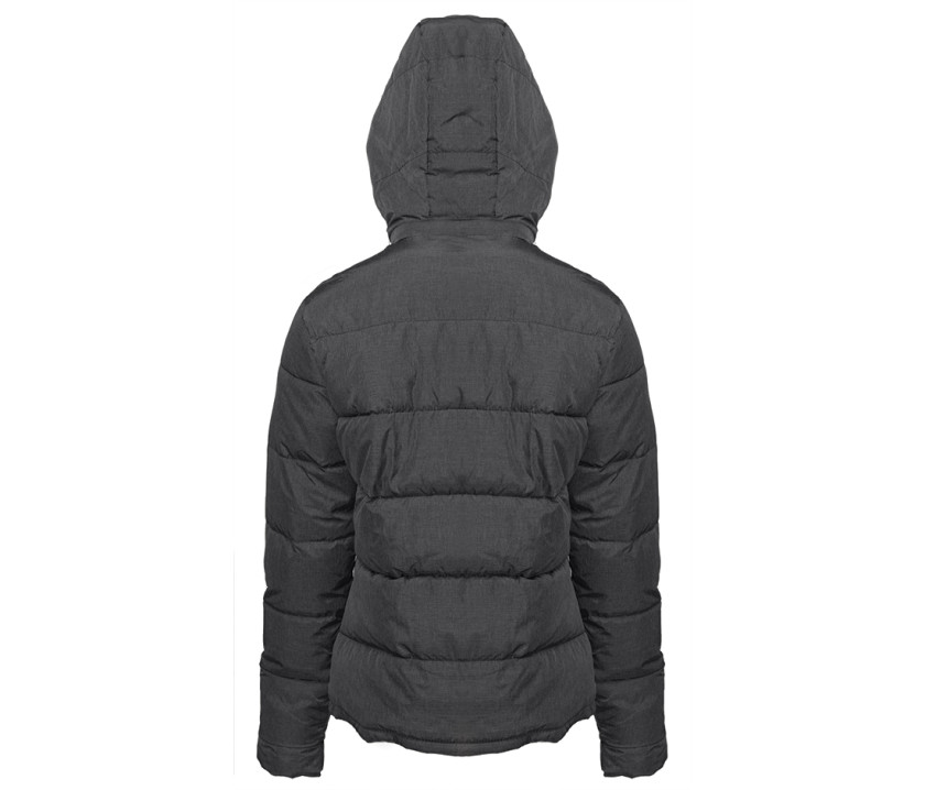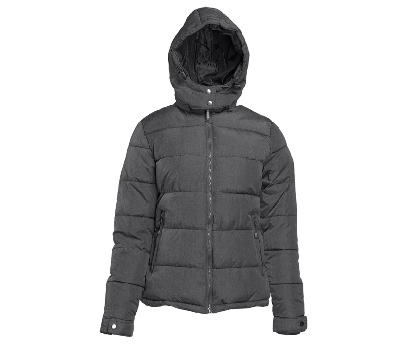 Doudoune femme matelassée avec capuche amovible. 2 poches zippées sur les côtés. 1 poche intérieure zippée. 1 poche intérieure Velcro®. Capuche pré-formée. Tricots aux poignets. Accès marquage au dos.