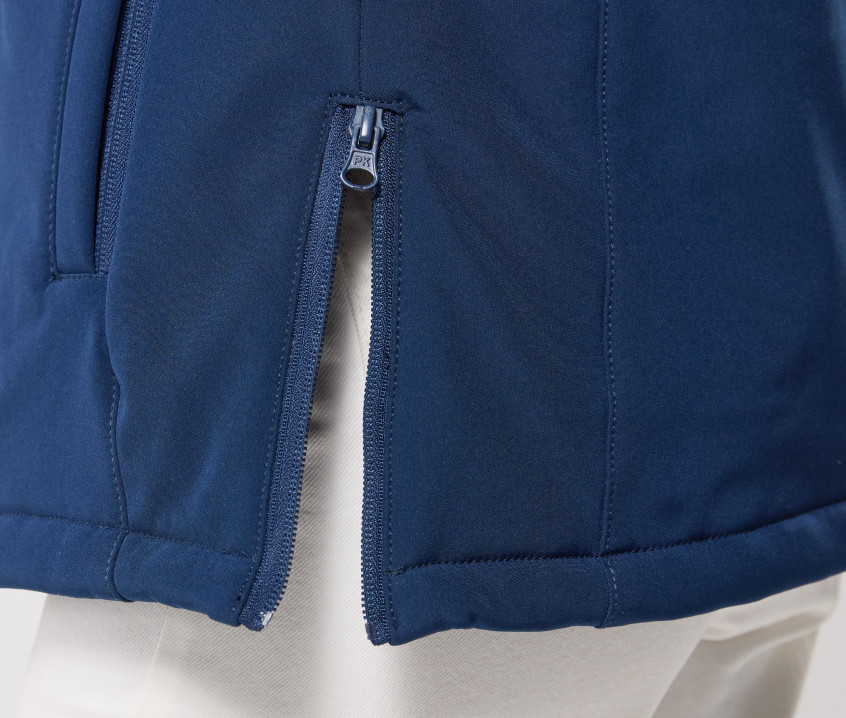 Parka Softshell femme 3 couches matelassée. Coupe ajustée. Poche poitrine zippée. 2 poches zippées sur les côtés. 2 poches ouvertes sur les côtés. Possibilité d'ajouter les capuches Réf. PK995, Réf. PK996 et Réf. PK997 (zip caché dans le col). Accès marquage dans le dos. Poche tablette intérieure. Poignets ajustables par languettes Velcro®.
