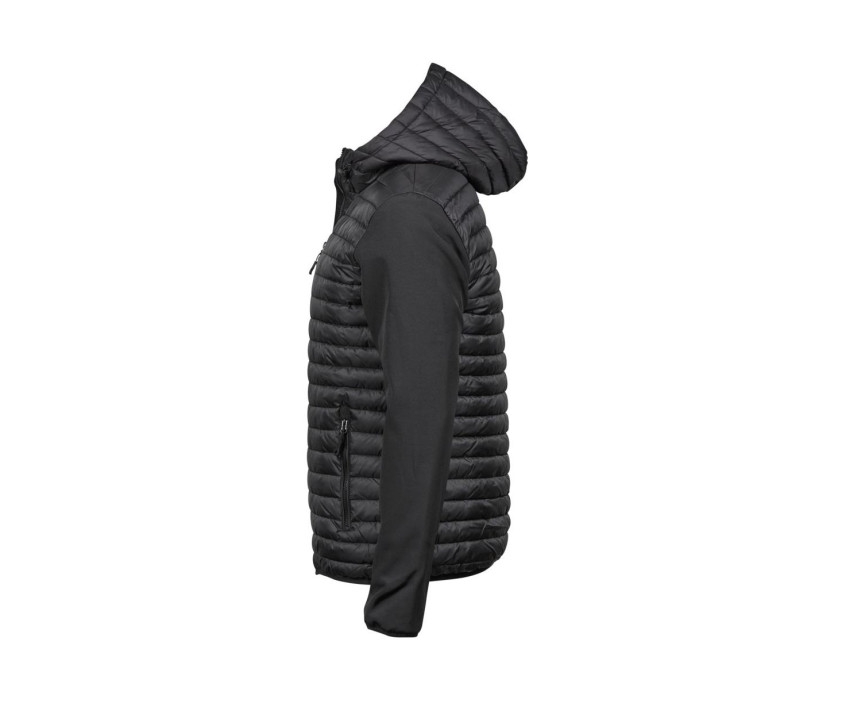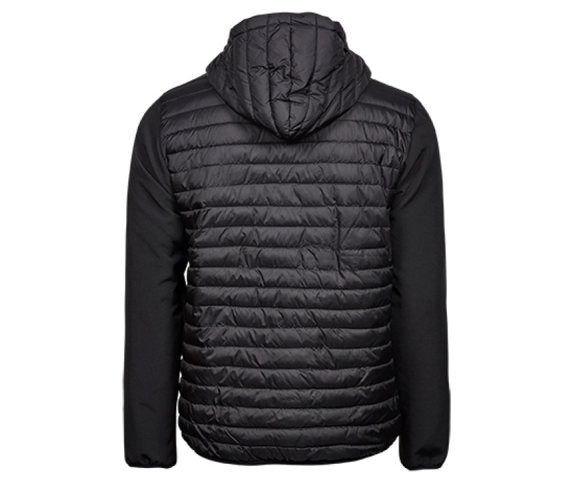Poche poitrine zippée. Capuche ajustable. Zips qualitatifs. Bi-matière: polyester matelassé et softshell. Taille ajustable. Poignets élastiqués. 2 grandes poches avant. Poche intérieure. Look sportif.