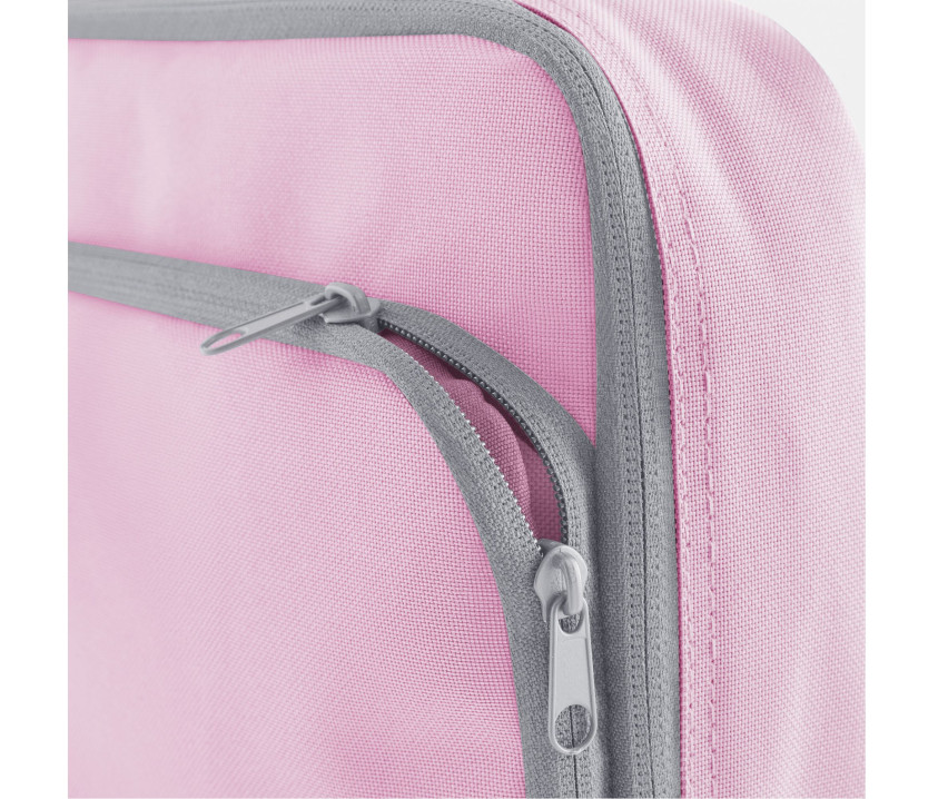 Poche principale et poche frontale zippées. Compartiment fraîcheur. Facile à nettoyer. Surface d'impression : 21x11cm. Mesures intérieures : 23x19x5.5cm