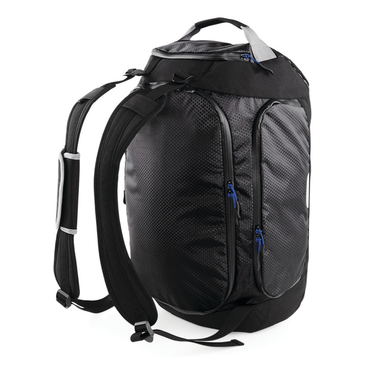 Étiquette détachable. Léger mais durable. Déperlant. Convient en bagage cabine. Détails réfléchissants. Fermeture principale zippée avec la possibilité d'utiliser un cadenas (non fourni). Compartiment principal matelassé. Poche arrière pour chaussures zippée. Poche avant zippée avec poches intérieures filet. Base renforcée. Peut être porté à la main ou sur les 2 épaules. Poignée matelassée. Convertible en sac à dos. Surface d'impression 28x9cm.