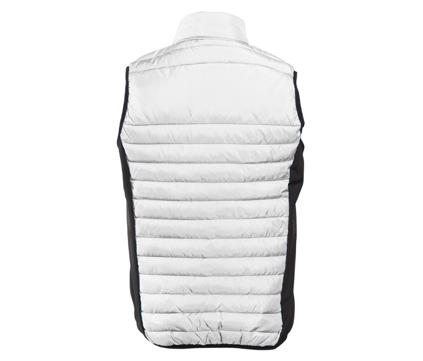 Bodywarmer léger moderne bi-matière. 2 poches latérales zippées. Protège-menton. Zips contrastés. Dimension zone de marquage avant 9cm et 12cm à l’arrière.