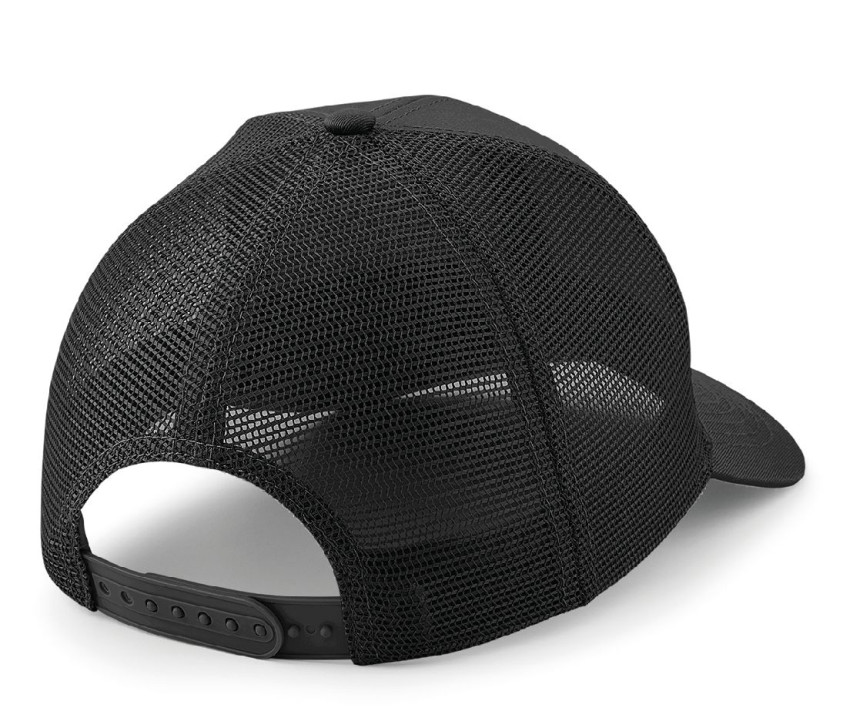 6 panneaux. Étiquette détachable. Visière semi courbée. Panneaux frontaux structurés. Oeillets de ventilation. Ajustable par picots. Tour de tête : 59cm. Visière en polyéthylène recyclé, un matériau résistant, léger et flexible.