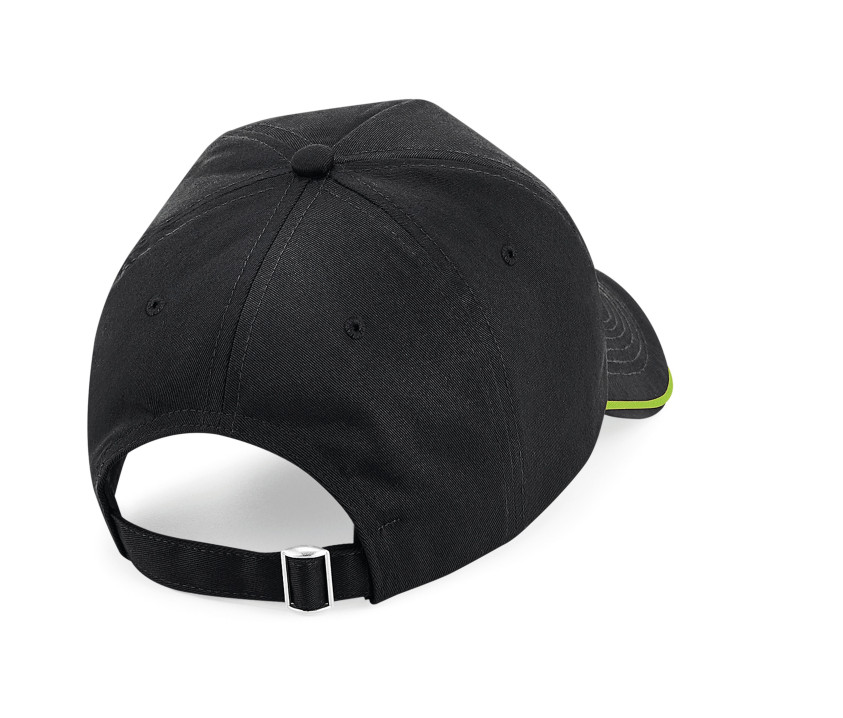 Panneau avant structuré. 5 panneaux. Visière préformée. Visière avec passepoil de couleurs différentes. Oeillets de ventilation. Réglable par boucle. Tour de tête : 58cm. Visière en polyéthylène recyclé, un matériau résistant, léger et flexible.