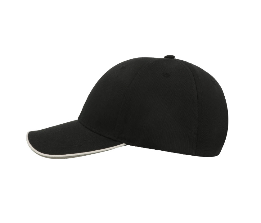 6 panneaux. Fermeture par Velcro®. Passepoil sur la visière et sur la patte de réglage. Visière contrastée et préformée. Œillets surpiqués. 4 coutures sur la visière. Tour de tête : 58cm. Structure de la visière en plastique.