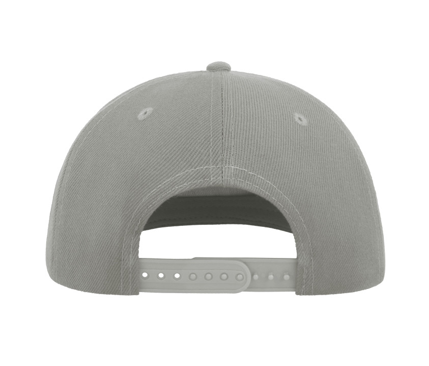 5 panneaux. Visière plate. Panneau avant renforcé. Sticker sur la visière. 6 coutures sur la visière. Oeillets surpiqués. Bandeau: 35% coton/65% polyester. Fermeture en pvc. Tour de tête : 58cm. Structure de la visière en plastique.