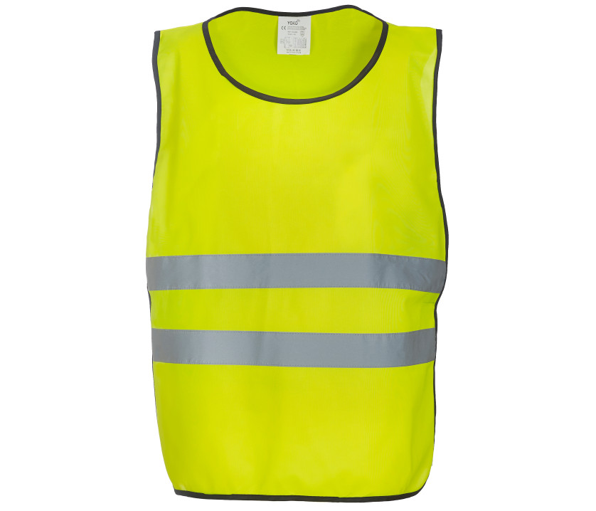 2 bandes horizontales réfléchissantes cousues de 5cm. Élastique et bande Velcro® de 10cm chaque des 2 côtés. Bords en polyester noir. Conforme à la spécification EN17353. La matière de ce produit va progressivement être remplacée par un tissu recyclé.