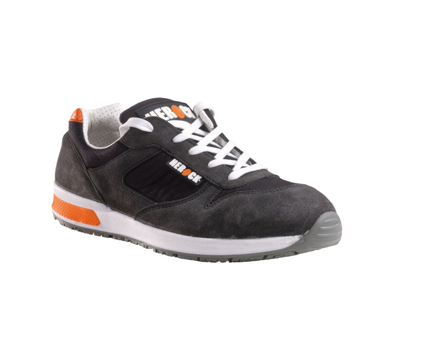 Chaussures basses avec embout de sécurité en acier. Semelle intermédiaire : Kevlar non métallique anti-perforation. Semelle intérieure : anatomique, antistatique et amovible. Semelle : PU/RPU avec une application PU sur le talon, double densité, antistatique, résistante aux dérapages, résistante à l’huile et aux hydrocarbures avec une absorption énergétique dans le talon.