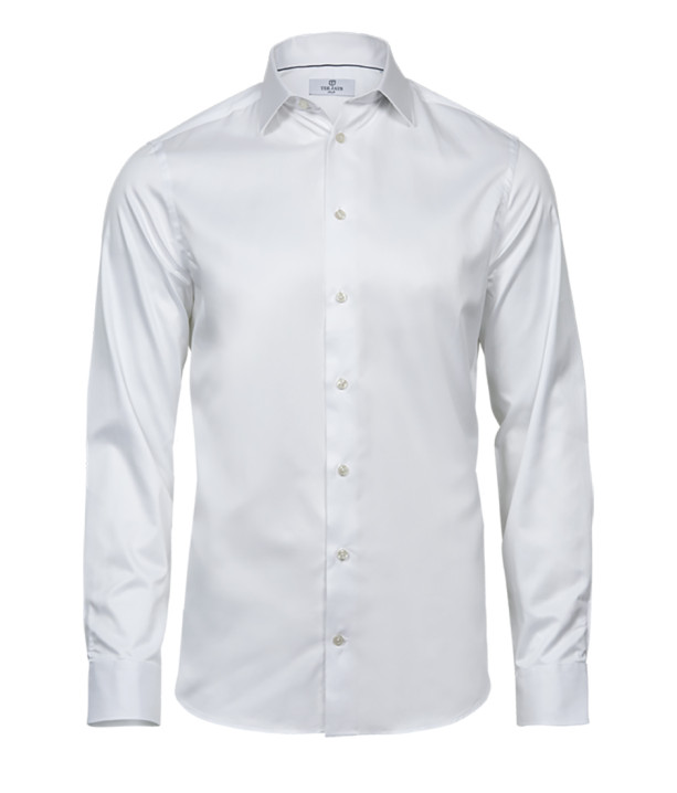 Col italien. Coupe ajustée. Col et poignets incorporés. Empiècement au dos. Pinces au dos. Ourlet arrondi. Facile d'entretien.