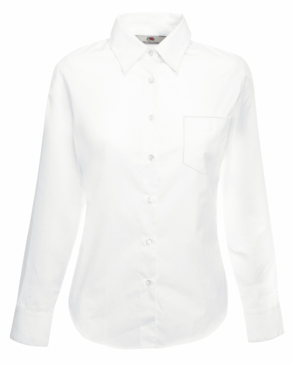 Chemise popeline femme - Manches longues. Poche plaquée sur la poitrine. Boutons ton sur ton.
