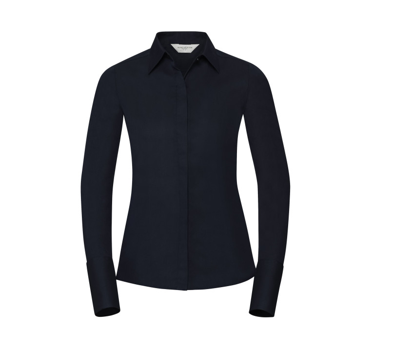 Gestion de l'humidité pour plus de fraîcheur et de confort. Tissu résistant. Coupe cintrée. Col moderne, finition soignée. Patte de boutonnage cachée. Panneaux princesse (sans coutures latérales). Rabat court, col semi-évasé. Pinces au dos. Manchettes et napolitaines. Option boutons de manchette. Sans poche.