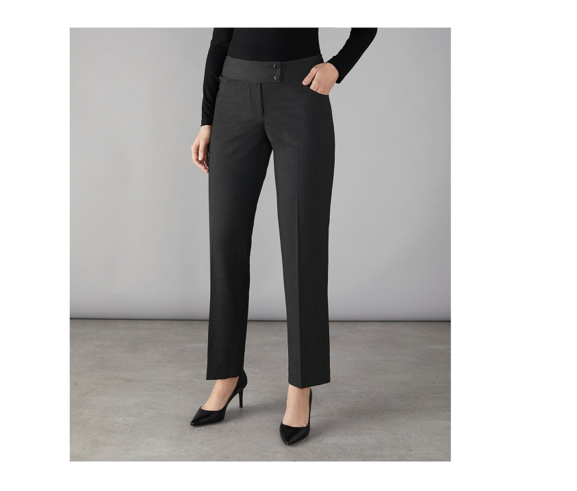 - Pantalon femme 1 pli. Fermeture par braguette et boutons. Coupe slim.
