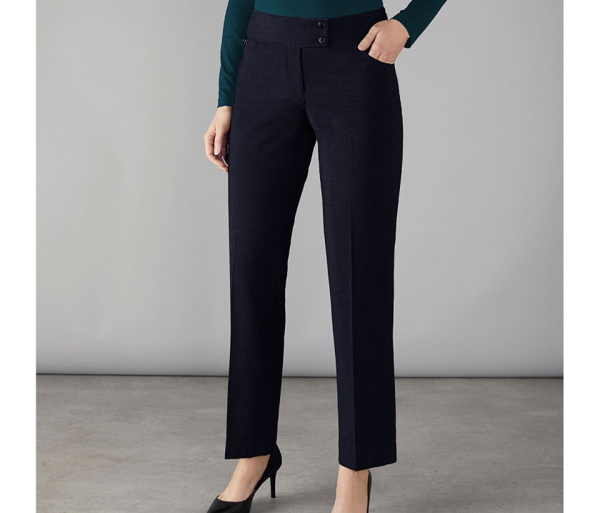 - Pantalon femme 1 pli. Fermeture par braguette et boutons. Coupe slim.