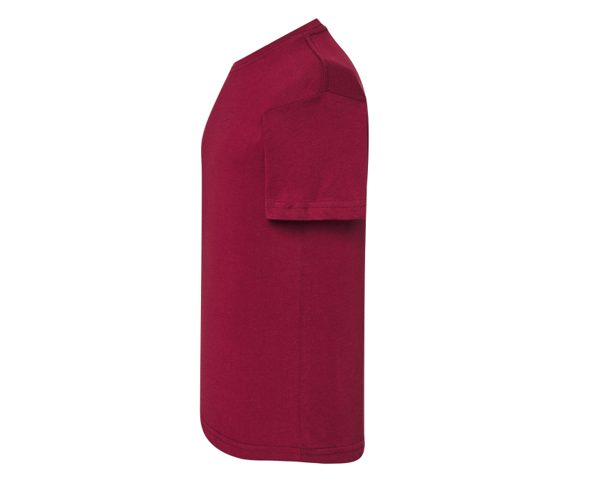 Tee-shirt col rond. Coutures latérales. Col en Lycra®. Double piqûre au col, manches et taille. Bande de propreté d'épaule à épaule.