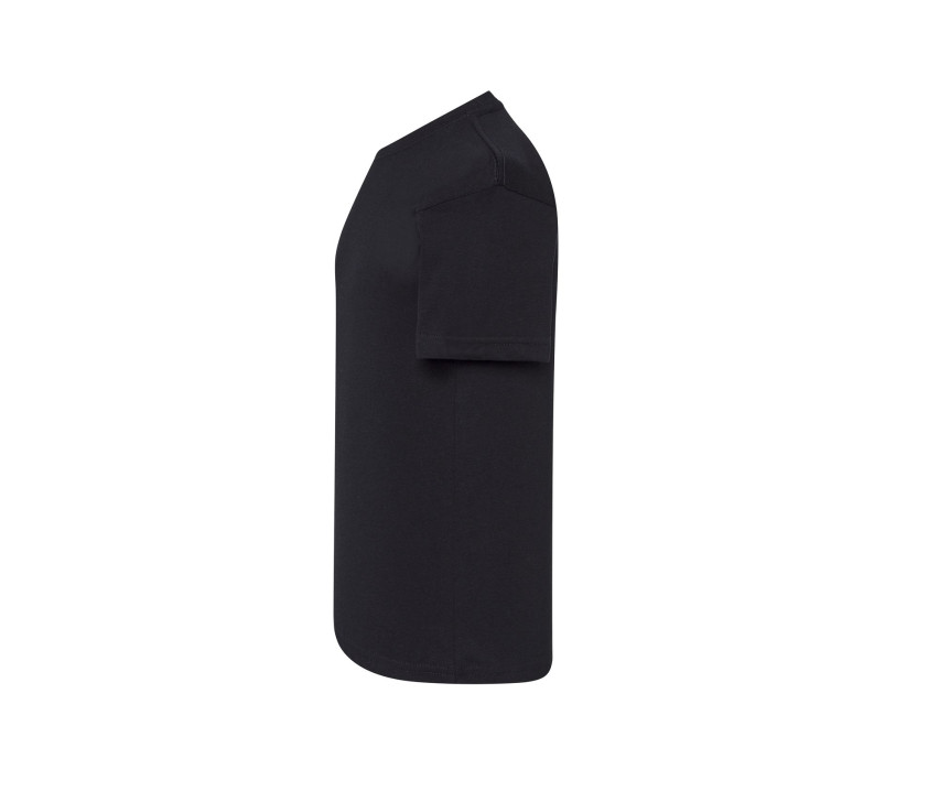 Tee-shirt col rond. Coutures latérales. Col en Lycra®. Double piqûre au col, manches et taille. Bande de propreté d'épaule à épaule.