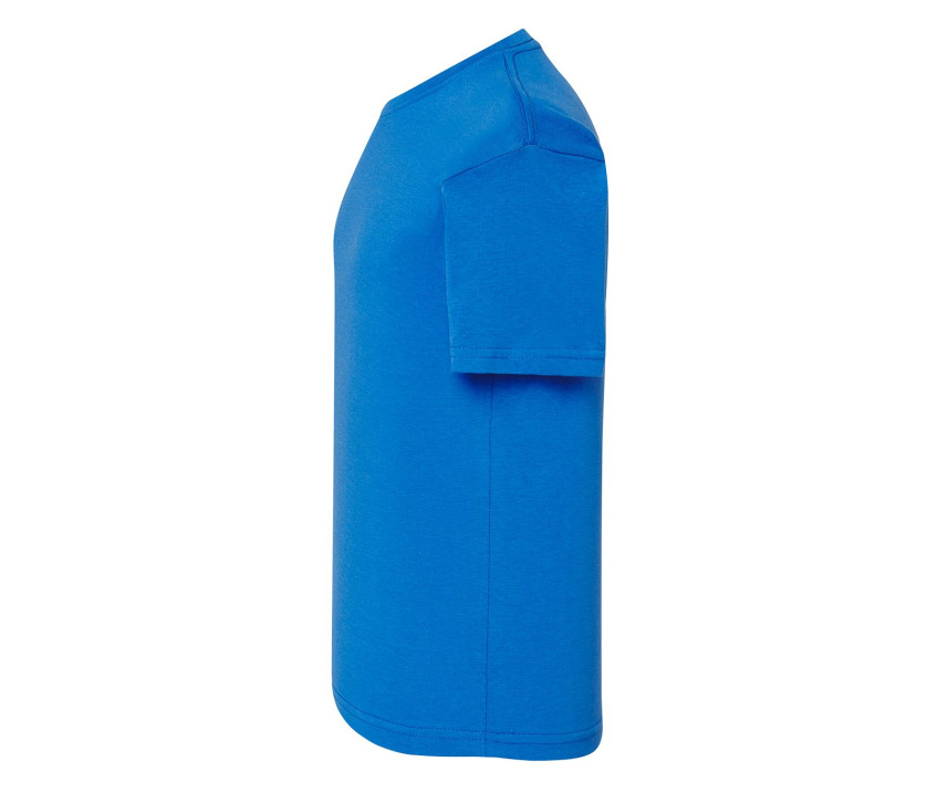 Tee-shirt col rond. Coutures latérales. Col en Lycra®. Double piqûre au col, manches et taille. Bande de propreté d'épaule à épaule.