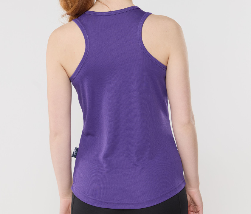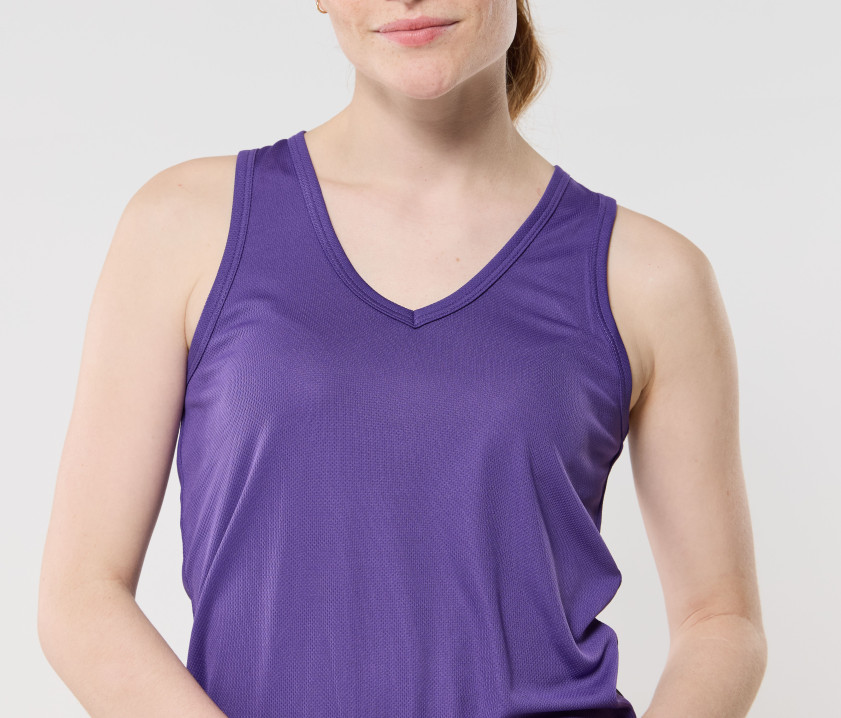 Débardeur de sport femme. Étiquette imprimée pour plus de confort. Coupe ajustée. Léger et respirant. Col et emmanchures de la même matière que le débardeur. Disponible en 9 couleurs. Dos nageur.