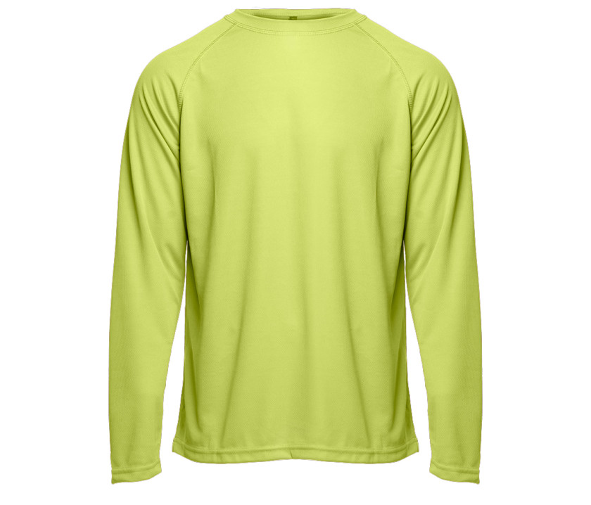Matière en 100% polyester facilitant l’évacuation de la transpiration. Léger et respirant. Manches longues raglan.