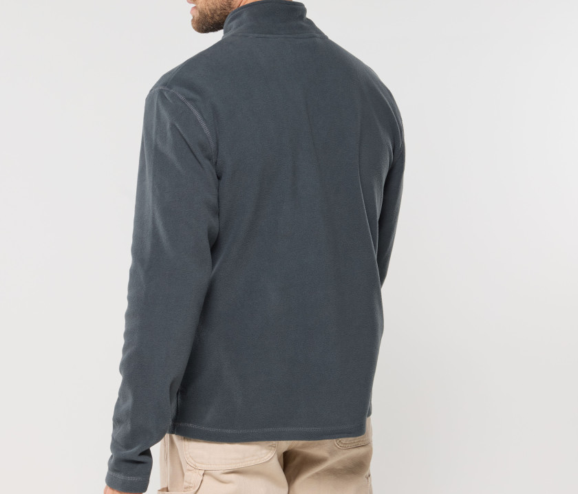Polaire col zippé. Coupe droite. Anti-peluche. Bande de propreté en twill. Manches droites.