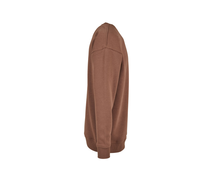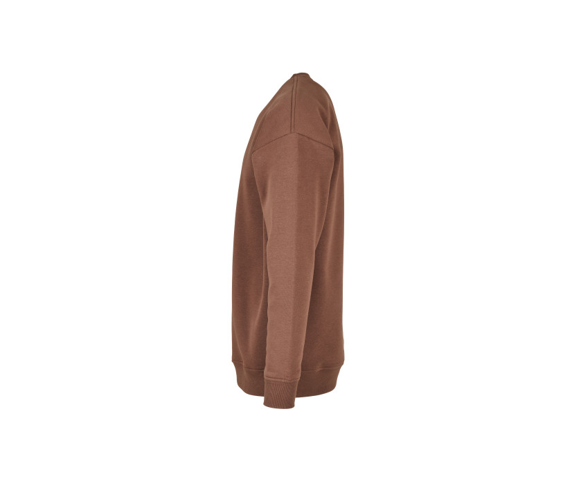 Col rond. Coupe classique. Manches droites. Sans étiquette de marque, uniquement une puce de taille. Col, taille et manches avec bords côte. Impression au col possible. Épaules tombantes. Bande de propreté au col.