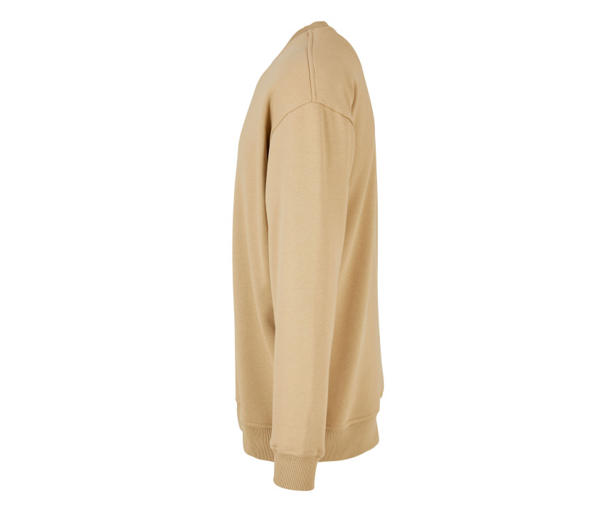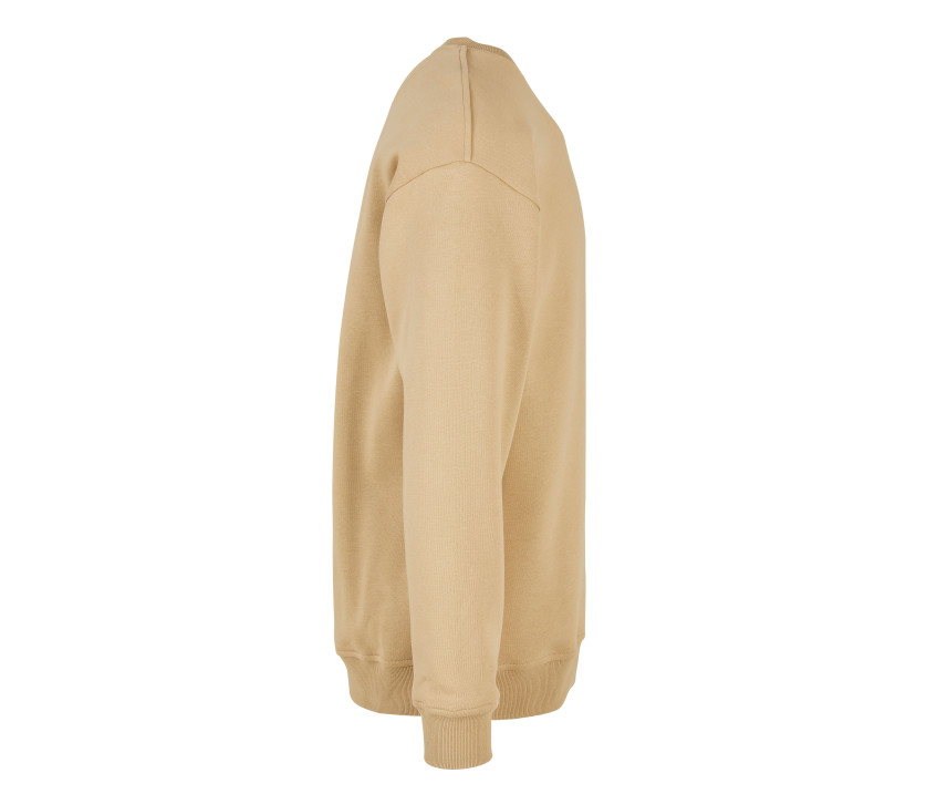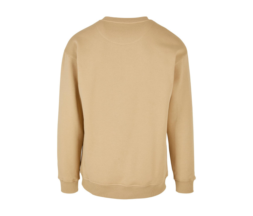 Col rond. Coupe classique. Manches droites. Sans étiquette de marque, uniquement une puce de taille. Col, taille et manches avec bords côte. Impression au col possible. Épaules tombantes. Bande de propreté au col.