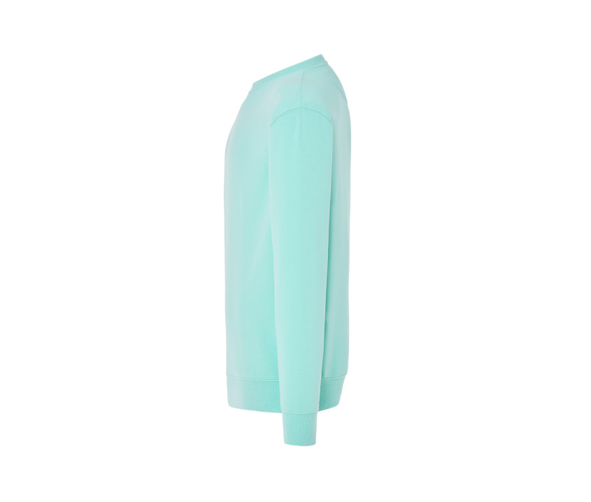 Sweat unisexe - Double piqûre col, manches et taille. Bord côte 1x1 avec Lycra® au col, aux poignets et à la taille. Col rond. Stock en conversion : polyester/coton vers coton/polyester recyclé. Intérieur gratté.