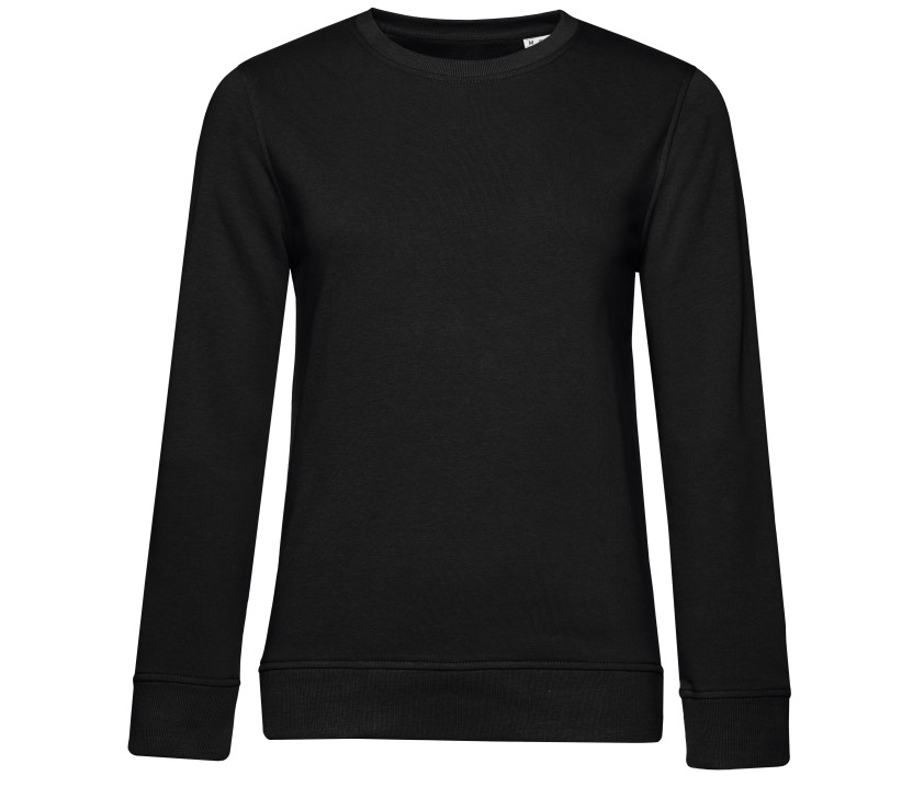 Sweat col rond organique ou organique en conversion femme. Sans étiquette de marque. Coutures latérales. Coupe féminine. Coton organique. Col, poignets et taille en bords côte. Manches droites. Bande de propreté en chevron. Face extérieure en 100% coton. Intérieur non gratté. Tissu résistant et toucher ultra-doux.