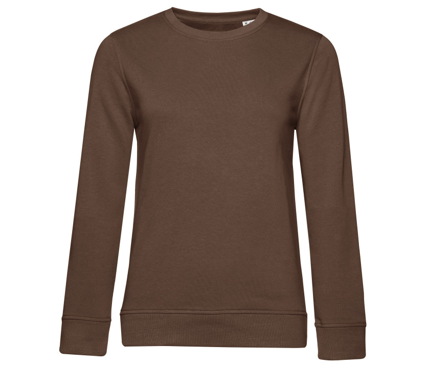Sweat col rond organique ou organique en conversion femme. Sans étiquette de marque. Coutures latérales. Coupe féminine. Coton organique. Col, poignets et taille en bords côte. Manches droites. Bande de propreté en chevron. Face extérieure en 100% coton. Intérieur non gratté. Tissu résistant et toucher ultra-doux.