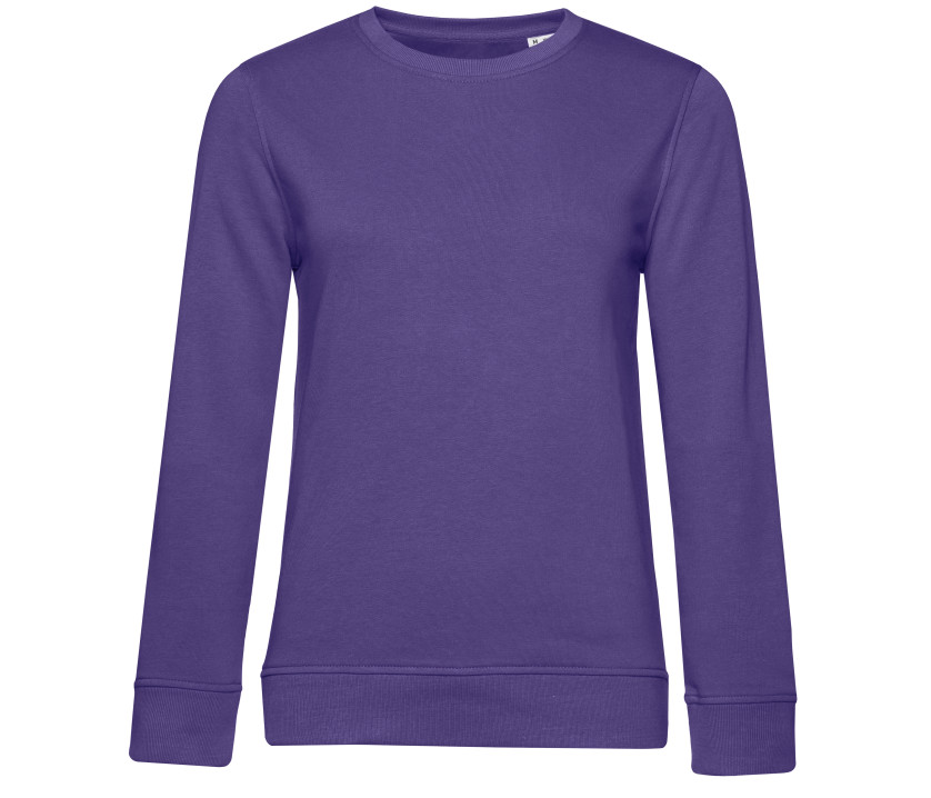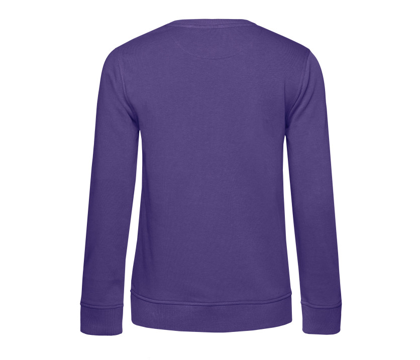 Sweat col rond organique ou organique en conversion femme. Sans étiquette de marque. Coutures latérales. Coupe féminine. Coton organique. Col, poignets et taille en bords côte. Manches droites. Bande de propreté en chevron. Face extérieure en 100% coton. Intérieur non gratté. Tissu résistant et toucher ultra-doux.