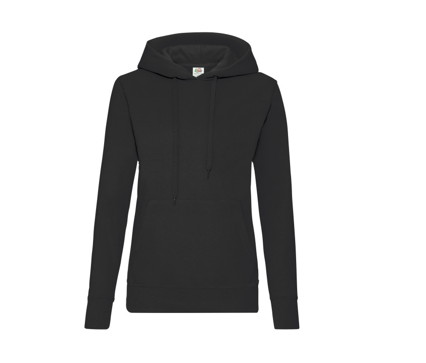 Sweat capuche femme - Coutures latérales pour une coupe cintrée. Capuche doublée avec cordon ton sur ton plat. Intérieur gratté.