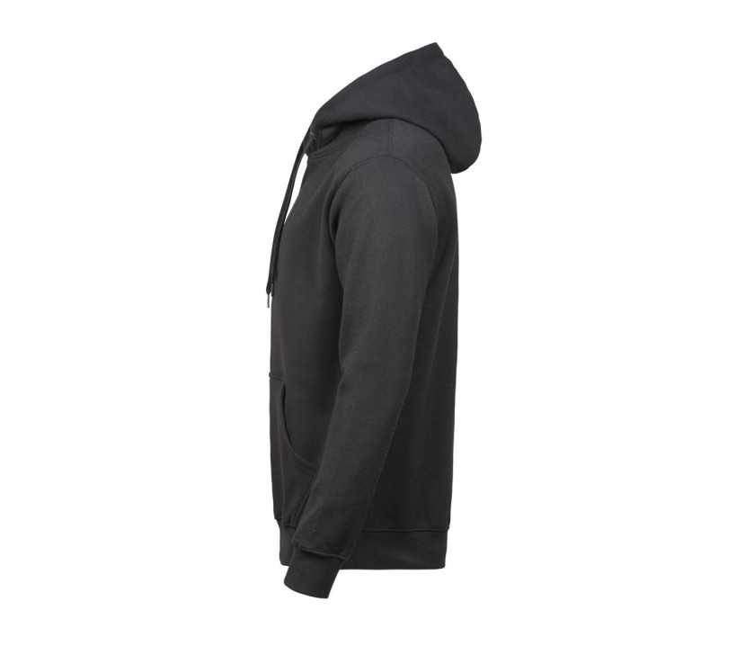 Sweat capuche 70/30 - Double teinture. Double surpiqûre. Présence d'élasthanne dans tous les bords côte. Intérieur gratté.