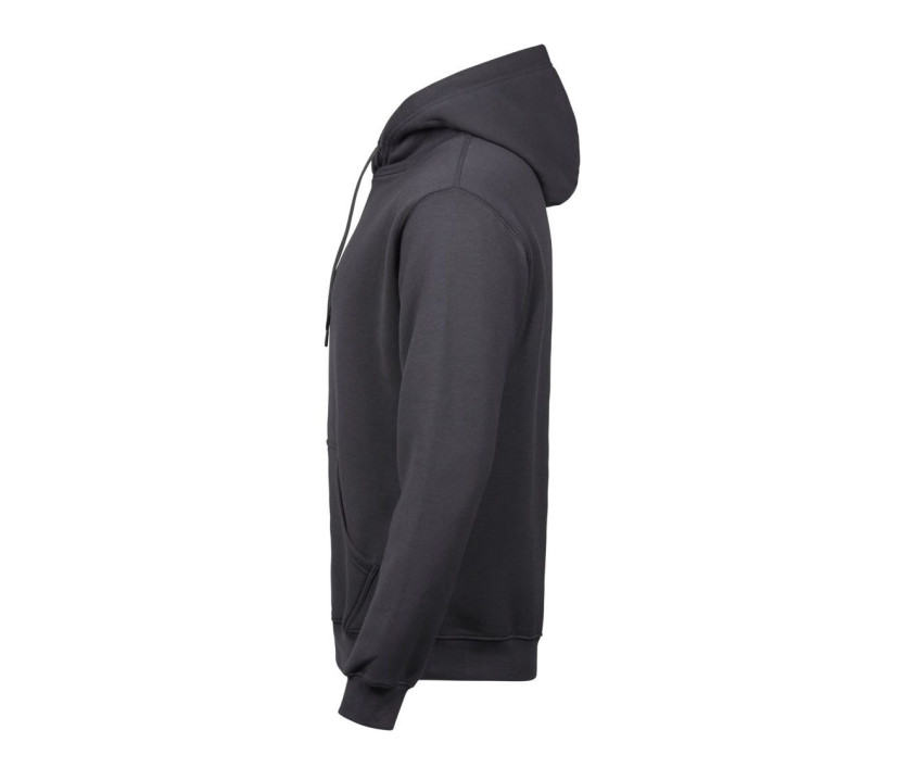 Sweat capuche 70/30 - Double teinture. Double surpiqûre. Présence d'élasthanne dans tous les bords côte. Intérieur gratté.