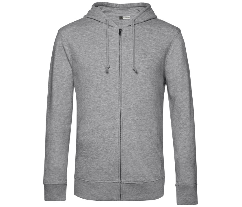 Sweat-shirt zippé à capuche, organique ou organique en conversion et au design tendance. Coutures latérales pour une coupe parfaitement adaptée aux silhouettes masculines. Sans étiquette de marque. Bande de propreté en chevrons. Fermeture Éclair métallique couverte. Capuche doublée avec cordons. 100% coton à l’extérieur. French Terry: intérieur non gratté. Tissu résistant et toucher ultra-doux.