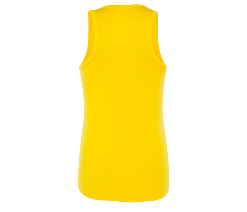 Dos nageur. Coupe ajustée. Étiquette amovible. Bords côte 1x1.