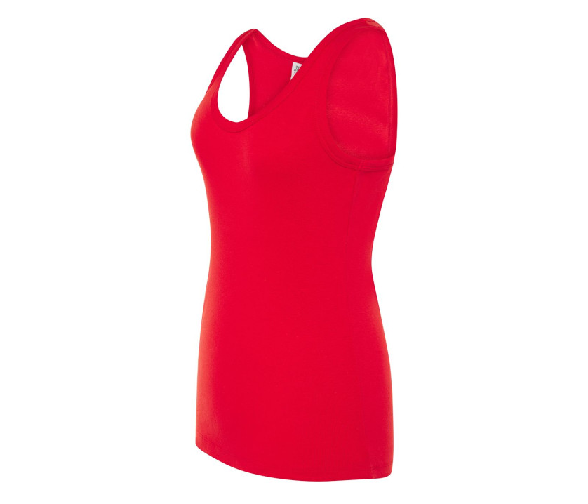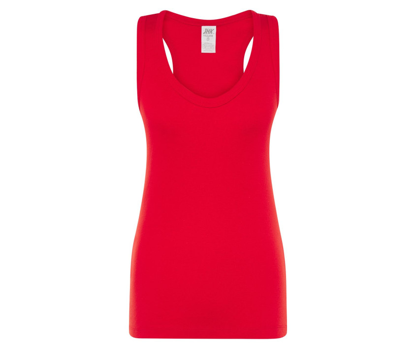 Dos nageur. Coupe ajustée. Étiquette amovible. Bords côte 1x1.