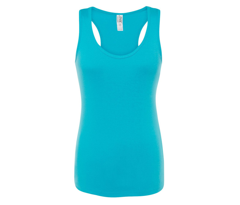 Dos nageur. Coupe ajustée. Étiquette amovible. Bords côte 1x1.
