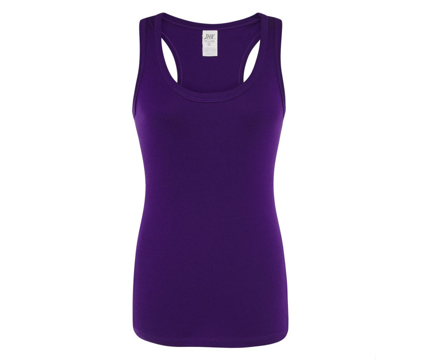 Dos nageur. Coupe ajustée. Étiquette amovible. Bords côte 1x1.