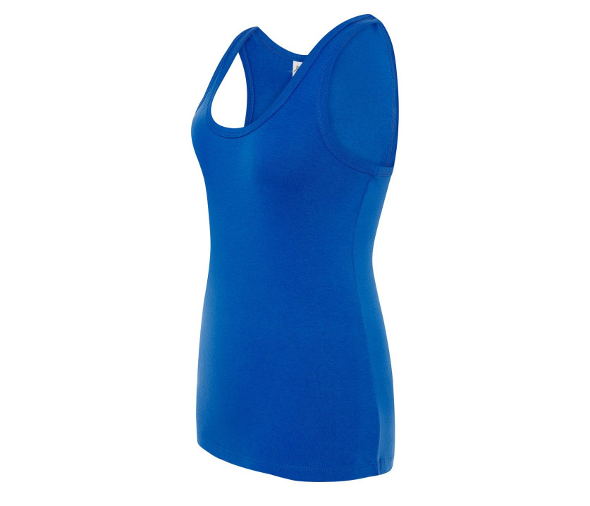 Dos nageur. Coupe ajustée. Étiquette amovible. Bords côte 1x1.