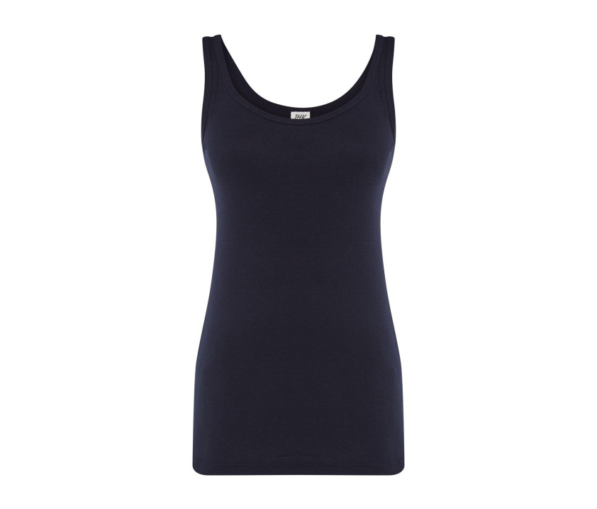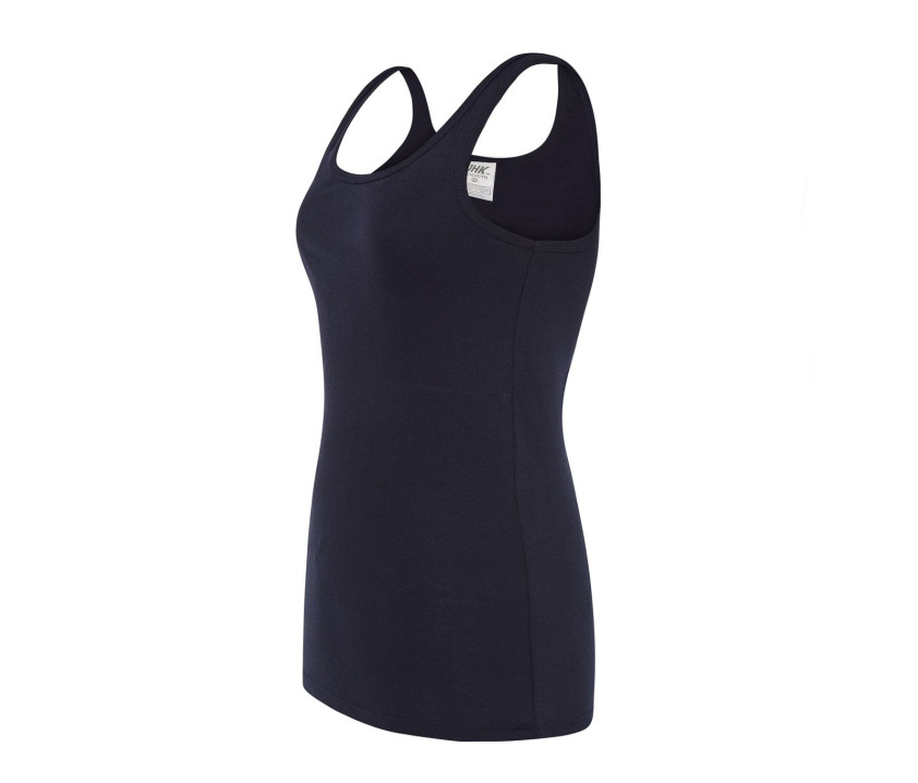 Coupe ajustée. Étiquette amovible. Bords côte 1x1.