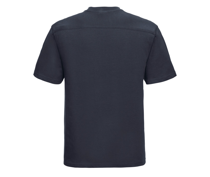 Tee-shirt de travail très résistant - Coupe classique. Col et emmanchures en tricot plat avec effet pli simple. Empiècement demi-lune.