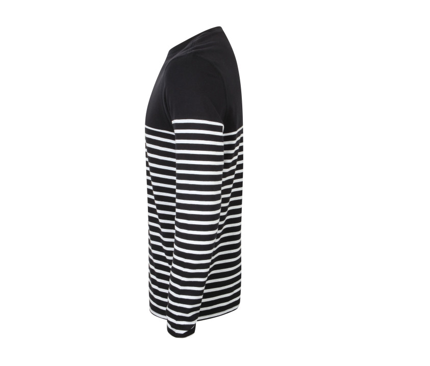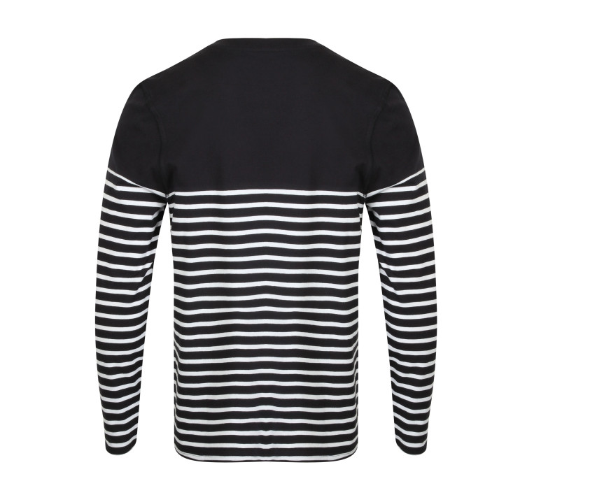 Marinière manches longues, coupe classique. Col rond. Poignets et ourlet en coutures à double aiguille. Manches courtes Réf. FR135.