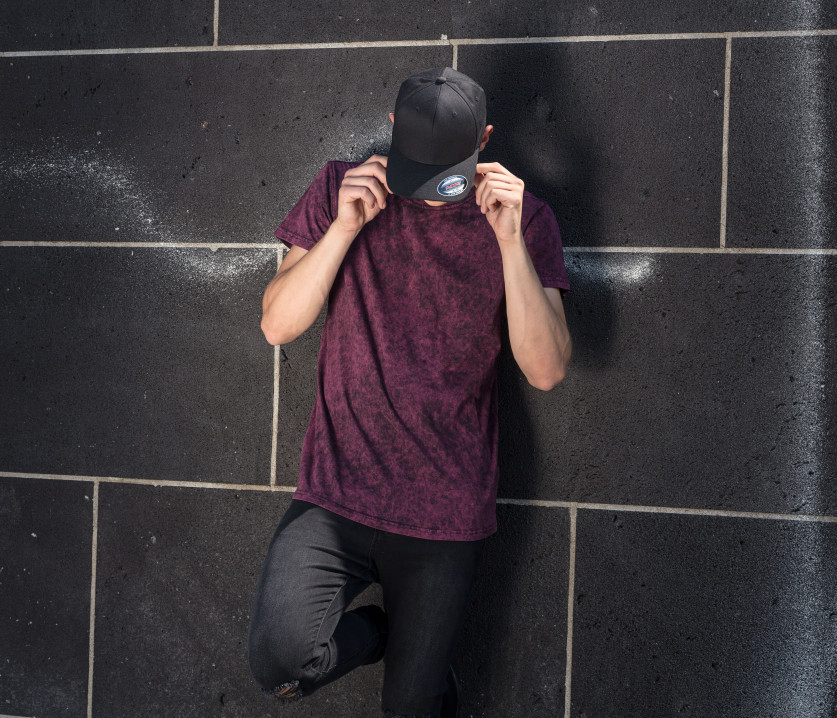Tee-shirt délavé. Coupe classique avec col rond. Lavage spécial pour effet batik. Sans étiquette de marque, uniquement une puce de taille. Coutures latérale. Double coutures au col, manches et ourlet. Laver avec des couleurs similaires. Grâce à sa teinture et à sa finition spéciales, chaque vêtement est unique et a un aspect particulier. Les changements de couleurs et d'aspect après le lavage et les modifications du tissu sont des caractéristiques de qualité.