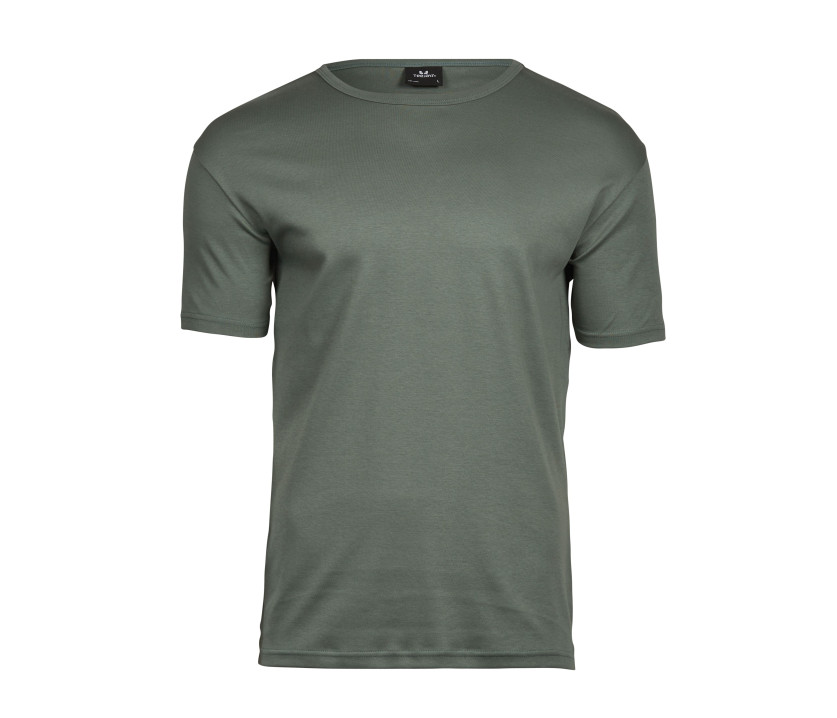 Tee-shirt homme - Coupe ajustée. Col en bord côte étroit. Double couture. Lavé aux enzymes.