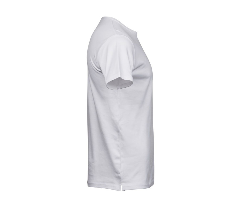 Coupe ajusté. Col en bords côte étroit. Double couture. Lavé aux enzymes et à la silicone pour un toucher doux et une meilleure élasticité. Pré-rétréci. Lavable à 60°C.
